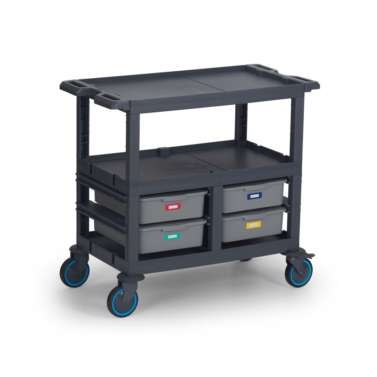 Restaurant, cafe, otel, okul ve hastane gibi işletmelerin servis hizmetlerinde tercih edilir. Kolayca hareket edebilen sessiz, tamponlu ve frenli tekerlekleri sayesinde çarpmalara karşı dayanıklıdır. Frenli tekerlekler ile eğik düzlemlerde sabitleme imkanı sunar. Esnek özellikleriyle hızlı ve pratik bir şekilde servis yapma imkanı sağlar. Modüler ve ergonomik yapısı ile işlerinizi kolaylaştırır. Komple gövde yapısının plastik olması, iç ve dış mekan kullanımlarına olanak sağlar, su ile yapılan temizliklerden hiç bir şekilde etkilenmez ve paslanma yapmaz, ürünün hammaddesinde kimyasal maddelere ve ısıya dayanıklı Poli Propilen malzeme kullanılmıştır. Modülün üç tarafının kapalı olması estetik açıdan farklılık arz etmektedir. Atık toplama ve çatal bıçak toplama kovası ile diğer modüllerden ayrılır. Üç adet rafı ve iki taraflı itme sapı sayesinde kullanıcılarına daha rahat iş yapma ve servis olanağı sunmaktadır.