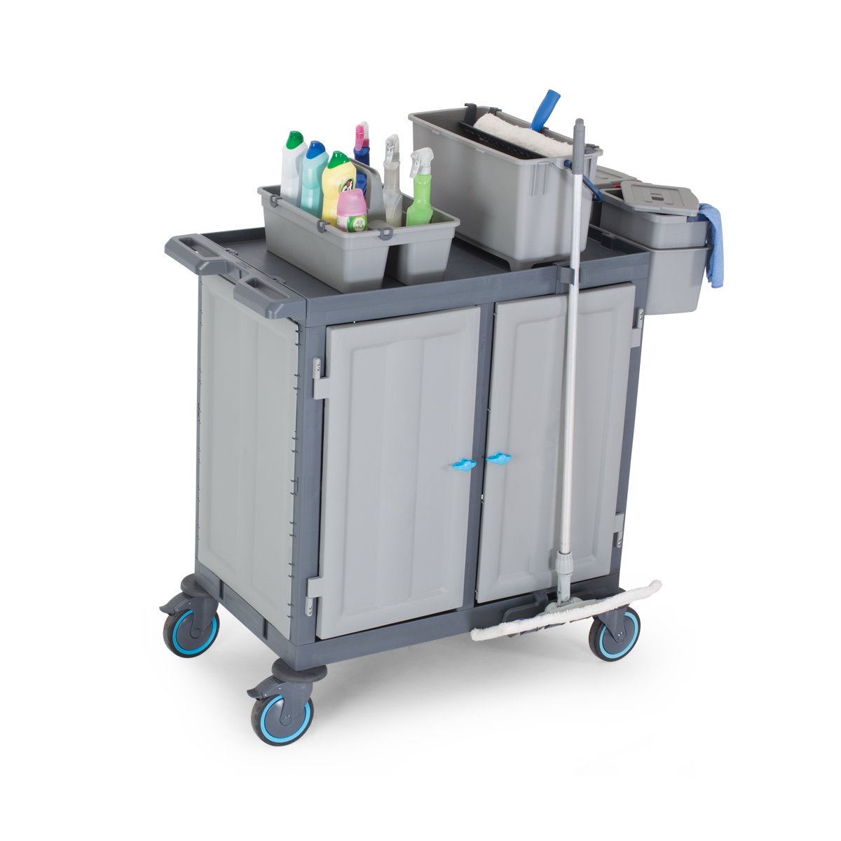 Otel, hastane, yurt, rezidans gibi işletmelerin kat hizmetlerinde pratiklik ve standart sağlar. Kolayca hareket edebilen sessiz, tamponlu ve frenli tekerlekleri sayesinde çapmalara karşı dayanıklıdır. Frenli tekerlekler ile eğik düzlemlerde sabitleme imkanı sunar. Esnek özellikleriyle hızlı ve pratik bir şekilde temizlik işlerinizi yapmanızı sağlar. Uluslararası standartlardaki üretimi, modüler ve ergonomik yapısı ile işlerinizi kolaylaştırır. Komple gövde yapısının plastik olması, iç ve dış mekan kullanımlarına olanak sağlar, su ile yapılan temizliklerden hiç bir şekilde etkilenmez ve paslanma yapmaz, ürünün hammaddesinde kimyasal maddelere ve ısıya dayanıklı Poli Propilen malzeme kullanılmış ve modül içerisinde yer alan aksesuar takımı ve çift taraflı itme sapı ile kat hizmetlerinde kullanım rahatlığı sunmaktadır. Modül, önden açılabilir 4 tarafı kapaklı olacak şekilde dizayn edilmiştir. Kapalı dolapların içinde, her iki bölmedeki ray takımları sayesinde, içine çeşitli temizlik malzemelerinin konulabileceği 2 x 18 lt kova takımı ve diğer tarafta 1 adet raf tipi tepsi muhteva etmektedir.